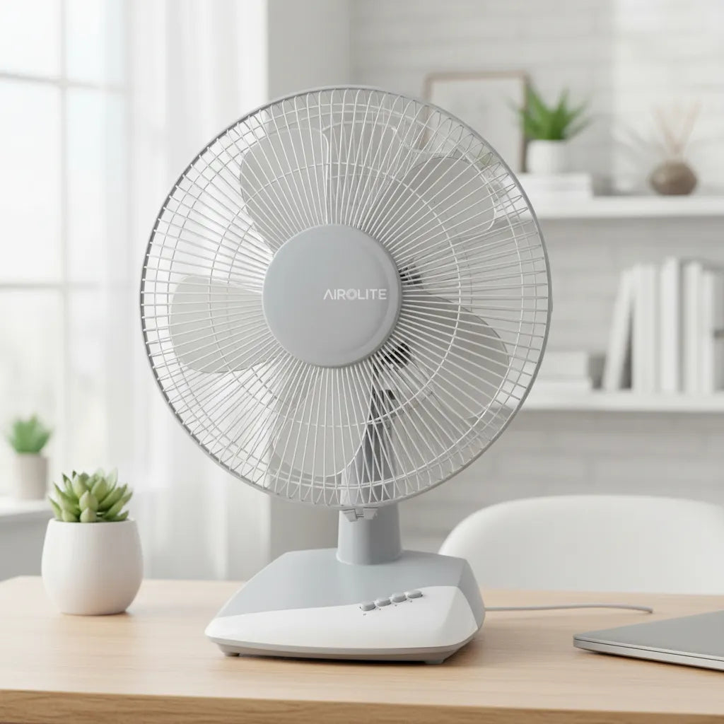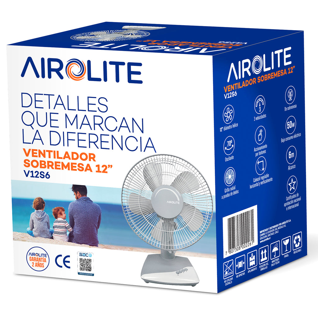 Disfruta de un ambiente fresco y confortable en tu hogar u oficina con el ventilador de sobremesa Airolite V12S6. Su diseño moderno y funcional, junto con su potente desempeño, lo convierten en la solución ideal para enfrentar los días calurosos con eficiencia y seguridad.